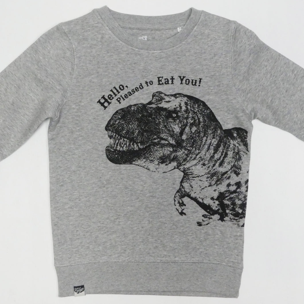 Kids crewneck sweatshirt with T-rex print: Hello, pleased to eat you !